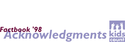 Thanks to. . . OICA Board of Directors Kids Count Funded by. . . More About the Factbook Kids Count is a Partnership of. . . On to Resources & Factbook Features Oklahoma Kids Count thanks the following individuals and organizations for their cooperation in gathering data for this project: Makala Bannister Oklahoma State Department of Health Larry Garrett Oklahoma Department of Human Services Matt Hesser Office of Accountability Marilynn Knott Oklahoma Department of Human Services Dick Lorenz Oklahoma State Department of Health Anna Maria Rodriguez Community Volunteer Nina Rowland Contracts & Consultation Jeff Wallace Oklahoma Department of Commerce Dawn Williams Oklahoma State Department of Education Victoria Wispell Community Volunteer Robert Wood Oklahoma State Bureau of Investigations Back to Top of Page Oklahoma Institute for Child Advocacy Board of Directors: George Foster, OD, President Marcy Price, VP Programs Danny Williams, VP Development Anthony Francisco, VP Trustees Robert Abernathy, Treasurer Peggy McCormick, Secretary Jean Hendrick, President-Elect Glenda Cobb Shannon Edwards Doug Fox Laurie Fuller Andrew Glenn, PhD Susan Harris Jay Keel Susan Loving Larry McCauley, EdD Ronald Matlock Susan Paddack Jocelyn Lee Payne Cheryl Potts Cathy Shearer, MDiv Roger Sheldon, MD Jeff Tate Vionette Torres-Miles, LPC Deborah Watson Kathy Williams Ken Young Back to Top of Page Oklahoma Kids Count Partnership funded by: Annie E. Casey Foundation Baltimore, Maryland Sarkeys Foundation Norman Chickasaw Nation Ada Kirkpatrick Family Fund Oklahoma City Sonic Industries Oklahoma City Stillwater National Bank Stillwater Drs. Carol and Roger Sheldon Oklahoma City Presbyterian Health Foundation Oklahoma City Burgess Law Firm Lawton The F&M Bank & Trust Company Tulsa Back to Top of Page 1998 Oklahoma Kids Count Factbook: Copyright 1998 Oklahoma Institute for Child Advocacy, Inc. Permission to copy, disseminate or otherwise use information from this Factbook is granted as long as acknowledgment is given to Oklahoma Kids Count, a project of the Oklahoma Institute for Child Advocacy. Sources for the data used in this book, which are listed in the Methodology & Sources section, remain the final authority regarding the quality and meaning of the data. For additional copies contact: Oklahoma Kids Count c/o Oklahoma Institute for Child Advocacy 420 NW 13th Street, Suite 101 Oklahoma City, Oklahoma 73103 Phone: 405-236-KIDS Fax: 405-236-KIDX Handsnet: HN3167@handsnet.org Back to Top of Page Oklahoma Kids Count is a Partnership of: Lead Agency Oklahoma Institute for Child Advocacy Anne Roberts, Executive Director Marlo Nash, Oklahoma Kids Count Project Coordinator Data Partner Oklahoma Department of Commerce Ron Rosenfeld, Secretary of Commerce Rex Smitherman, Chief Operating Officer Jeff Wallace, Research Analyst Leadership Partner Oklahoma Commission on Children and Youth Tom Kemper, Executive Director Keith Pirtle, Planner Media Strategy Partner Kouri/Lusk Associates Mark Kouri, Art Director Jon Lusk, Executive Director Policy Analyst and Writer Sandy Ingraham, JD, MSW Contracts & Consultation Back to Top of Page |